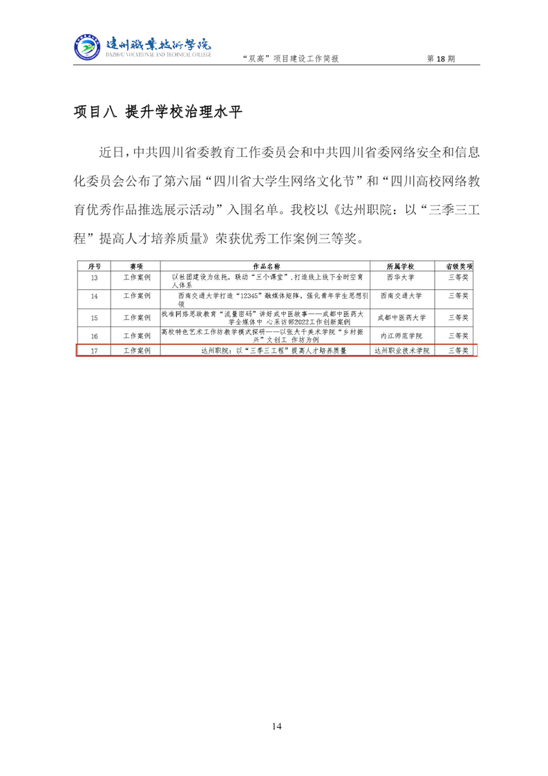 “双高”项目建设工作简报 (第十八期)